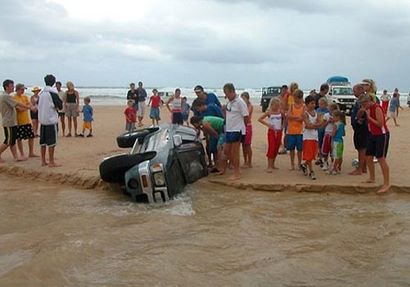 The beach is a great place to spend time. You can relax in the sun, play in the water, learn to surf, or build sandcastles; the possibilities are almost limitless. One option is to take photos of someone who has found themselves in an awkward situation.