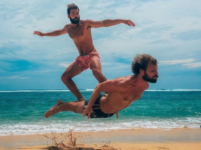 I have a hunch that they won’t be able to accomplish their goal, but I could be entirely mistaken. Where else on the beach can you take a picture of yourself surfing on a friend’s shoulders? I’d say it turned out to be a charming photo in the end.