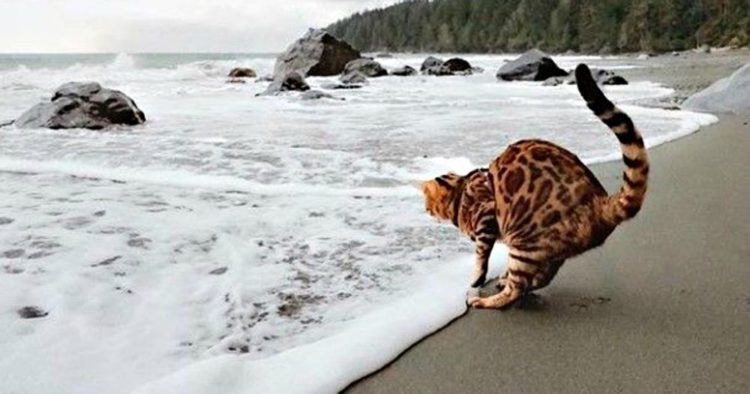 Who would have thought that bringing a cat to the beach would be a good idea in the first place? The adventure and thrill might start as soon as you step into the water. This photo looks as though it was taken in a real-life setting. The timing of the shot deserves recognition. The photographer has successfully caught an incredibly amazing pose.